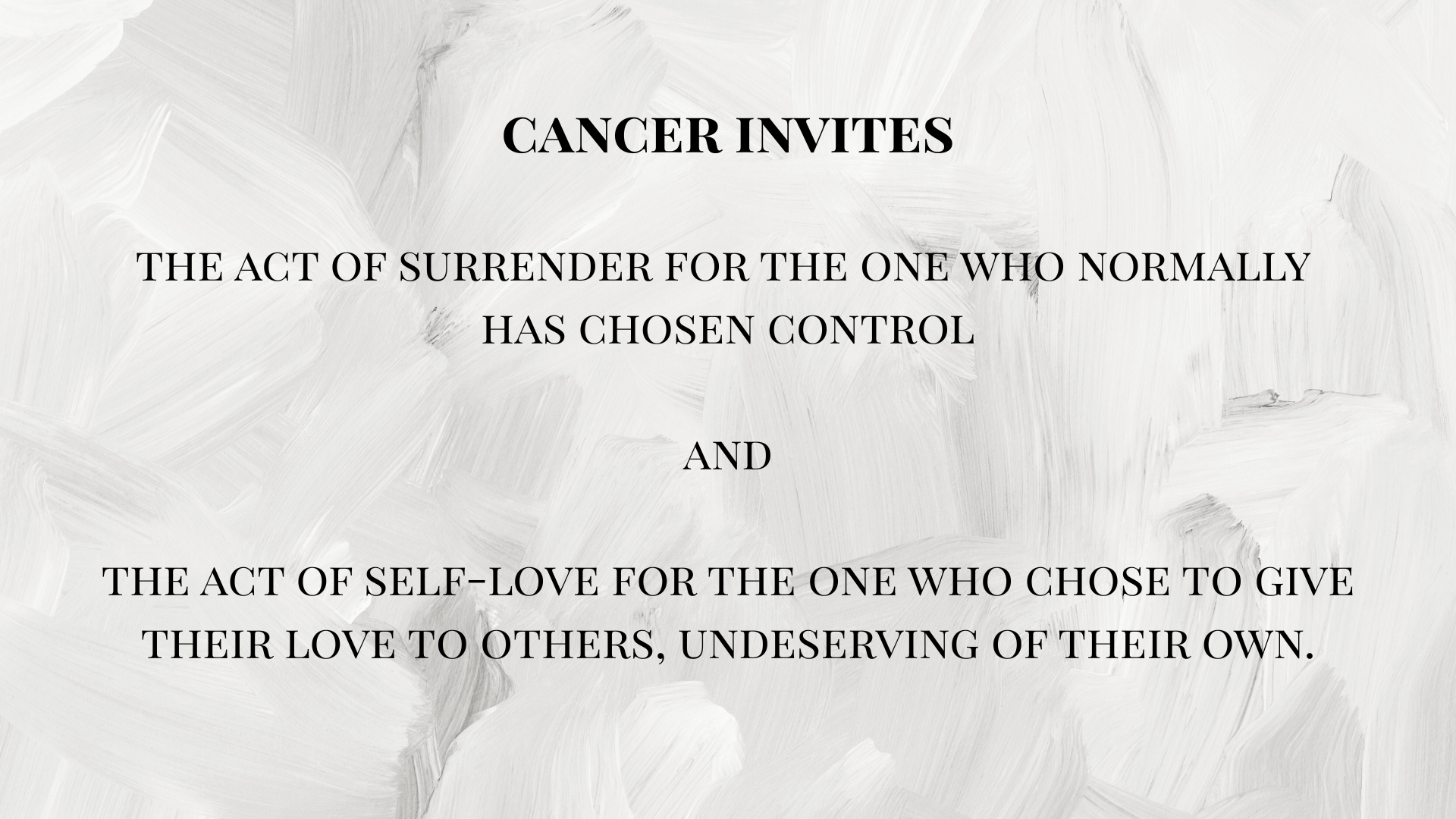 From the cancer experience comes the love I will make."